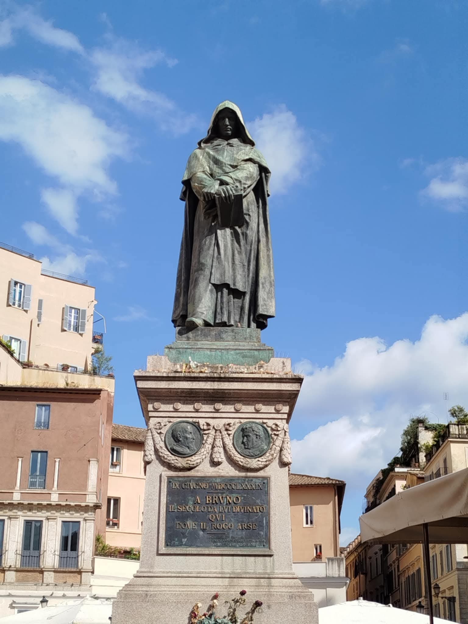 Giordano Bruno az életét áldozta a szabad gondolkodás oltárán, tán ezért is neki emeltették 1889-ben az első szobrot Rómában a megalakuló egységes Olaszország vezetői, neveztek el róla utcákat, iskolákat és adják ki újra és újra a könyveit.